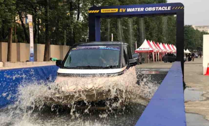 Lintasan test drive sepanjang 2 km disiapkan di loading dock Hall 1–10, dilengkapi dengan fitur unggulan Water Obstacle yang dirancang untuk menguji performa kendaraan, termasuk mobil listrik, dalam kondisi medan basah.