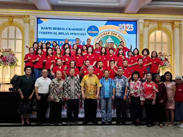 Dalam semangat kebersamaan dan kepedulian sosial, Alumni SMA Kristen Petra I Siang Angkatan 1977 (AP77) menggelar kegiatan bakti sosial sekaligus merayakan Mooncake Festival bersama 600 anggota Yayasan Sosial Dharma Warga Surabaya, di Restoran Tristar, Minggu sore (5/10/25).